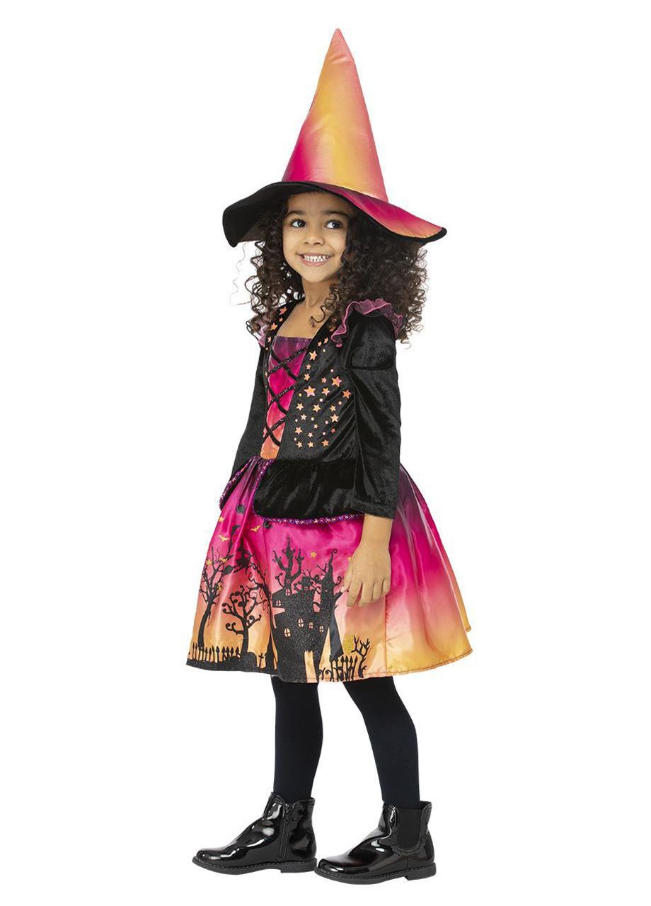 Strój czarownicy dla dziewczynki WIEDŹMA ZACHODU SŁOŃCA 3-4 lata