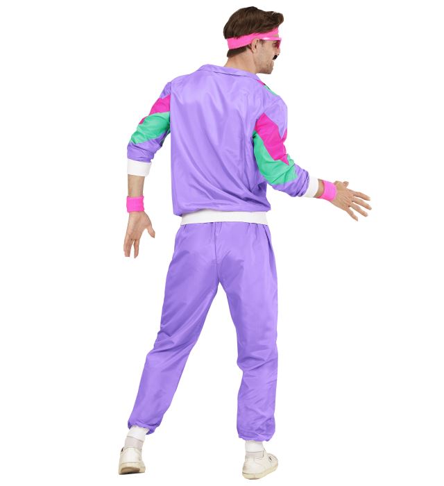 • fioletowe dresy w stylu lat 90. i 80.