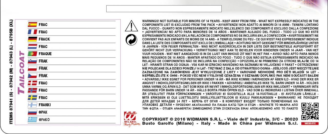 | w komplecie | frak (spodnie oraz pozostałe dodatki nie stanowią kompletu) |