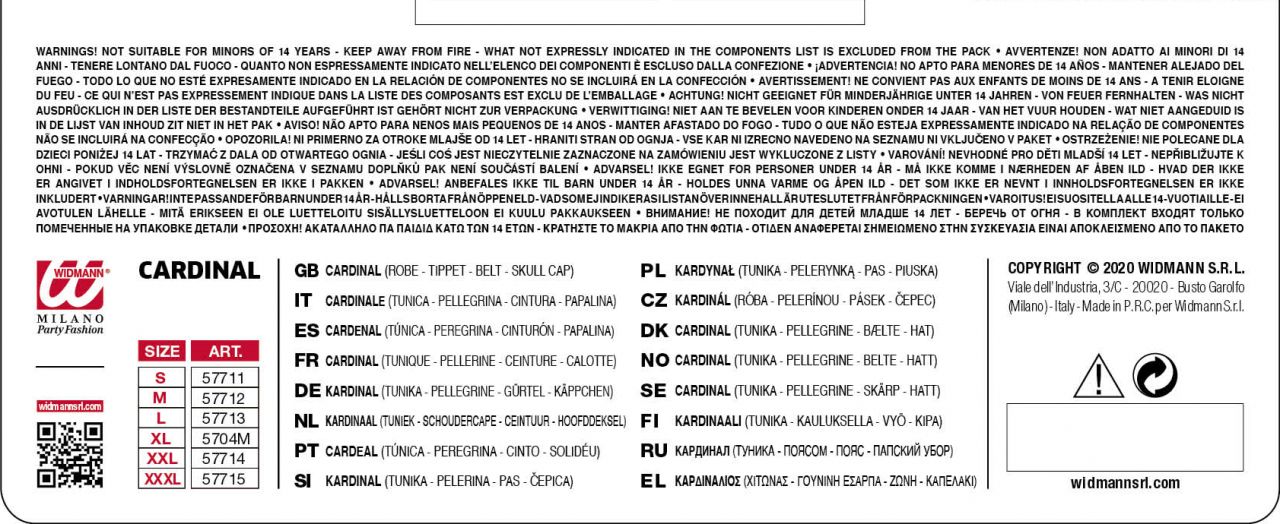 Właściwie w przypadku tego stroju każdy opis możemy uznać za zbędny. Wystarczy spojrzeć na strój kardynała, aby określić, czy to propozycja odpowiednia dla Ciebie. Jeśli lubisz szokować i przyciągać uwagę otoczenia, a do tego jesteś gotowy na założenie sutanny, to prezentowane przebranie spełni Twoje oczekiwania. Czerwony strój kardynała to idealna charakteryzacja dla odważnych imprezowiczów. Świetnie sprawdzi się podczas karnawału, Halloween, wieczoru kawalerskiego i nie tylko. Silna prawa ręka samego papieża z pewnością zrobi porządek na przyjęciu.