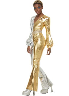 Z³oto-srebrny kombinezon to doskona³y strój na imprezê w stylu disco. Wybierz po³yskuj±c± stylizacjê, która wraz z odpowiednimi dodatkami sprawi, ¿e staniesz siê prawdziw± królow± parkietu. Taki nietypowy strój karnawa³owy damski zachwyci i zwróci uwagê wszystkich uczestników zabawy.