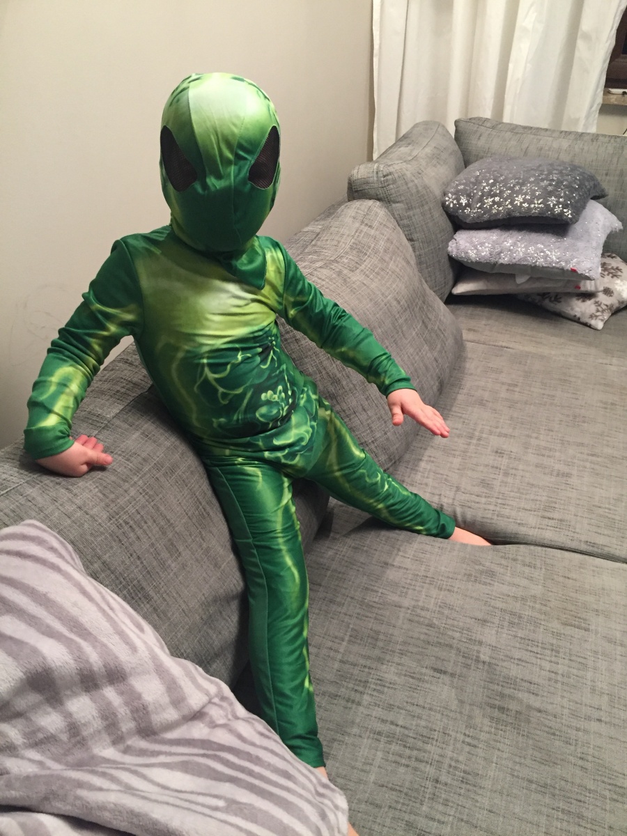 Strój kosmity dla dziecka OBCY strój ufoludka 4-6 lat jest łatwy do zakładania i wygodny, co sprawia, że dziecko może spędzić w nim wiele godzin beztroskiej zabawy.