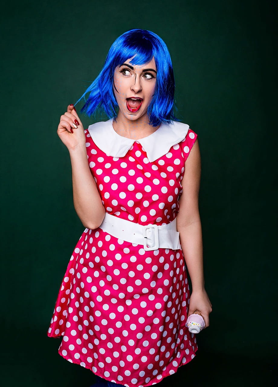Sukienka w stylu lat 50. różowa w białe kropki.