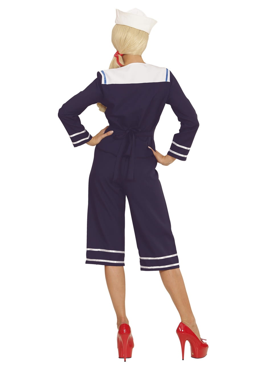 Seksowny strój Pani Marynarz w stylu pin-up. Świetna propozycja dla imprezowiczek, które chcą nawiązać do klimatów lat 50. i zmysłowych, słodkich modelek, które uśmiechały się z okładek ówczesnych czasopism. Kostium z pewnością zwróci na Was uwagę i pozwoli zabłysnąć przy niejednej, przebieranej okazji.
