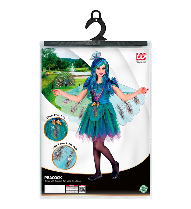 • w komplecie: suknia z welonem w kształcie pawiego ogona, ozdoba na głowę