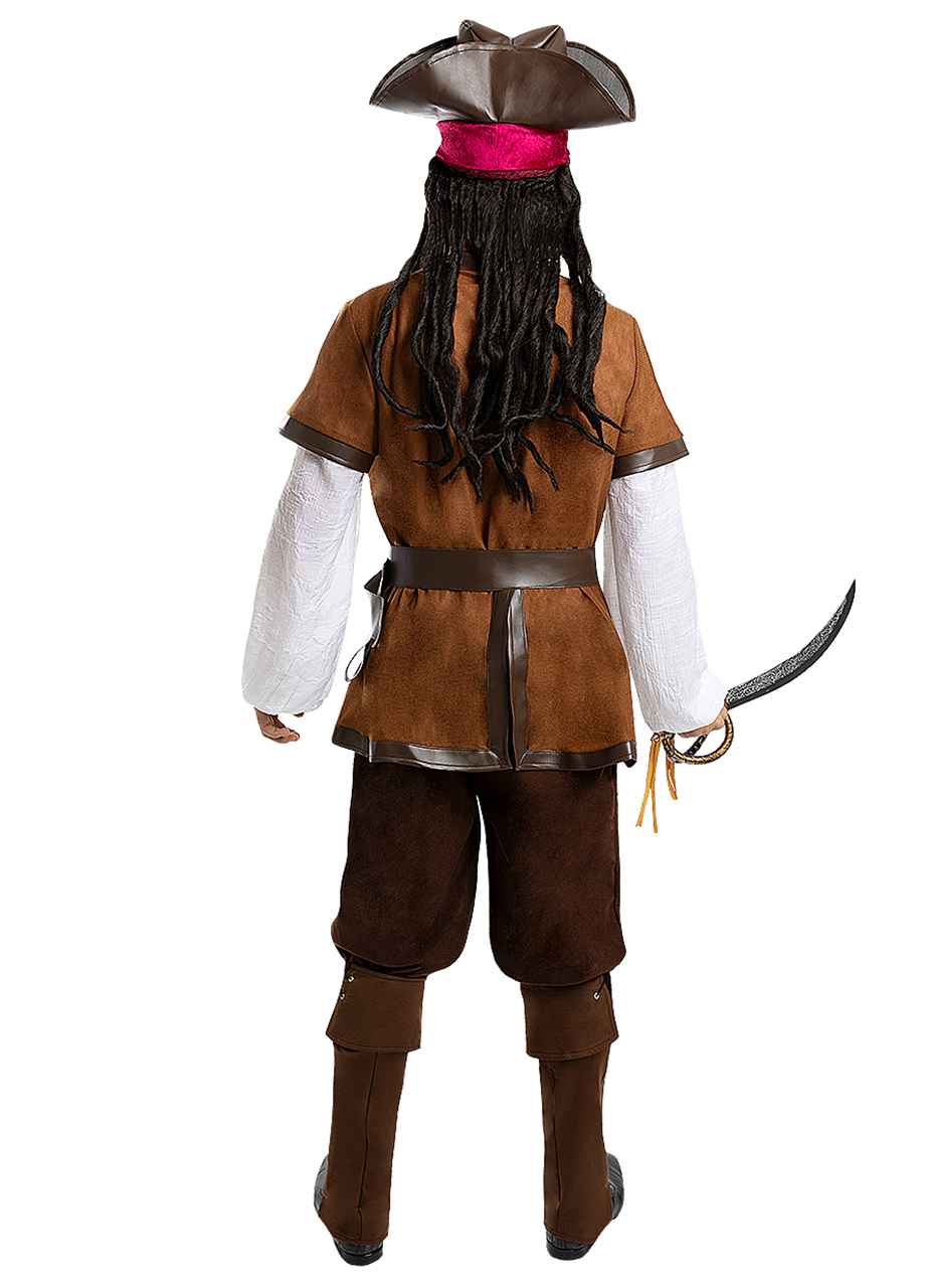 Oryginalny i kunsztowny, strój pirata dla dorosłych to idealny wybór na karnawałową imprezę lub kostiumową zabawę. Przebranie pirata przenosi w świat śmiałości i przygód, łącząc w sobie elementy tajemniczości i odważnego stylu. Kostium pirata dla dorosłych jest starannie wykonany, z dbałością o szczegóły, aby zapewnić autentyczne wrażenia. Składa się z charakterystycznej kamizelki, koszuli, kapelusza oraz nakładek na buty. Nogi przysłaniają wygodne jednokolorowe spodnie, idealnie komponujące się z resztą stroju.