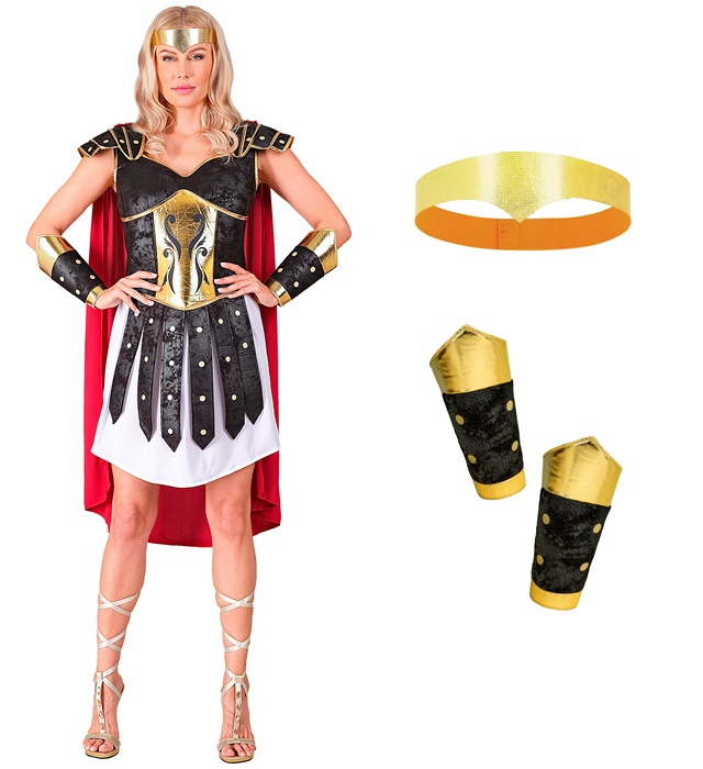 w komplecie: tunika, zbroja z peleryną, opaska na głowę, naramienniki
