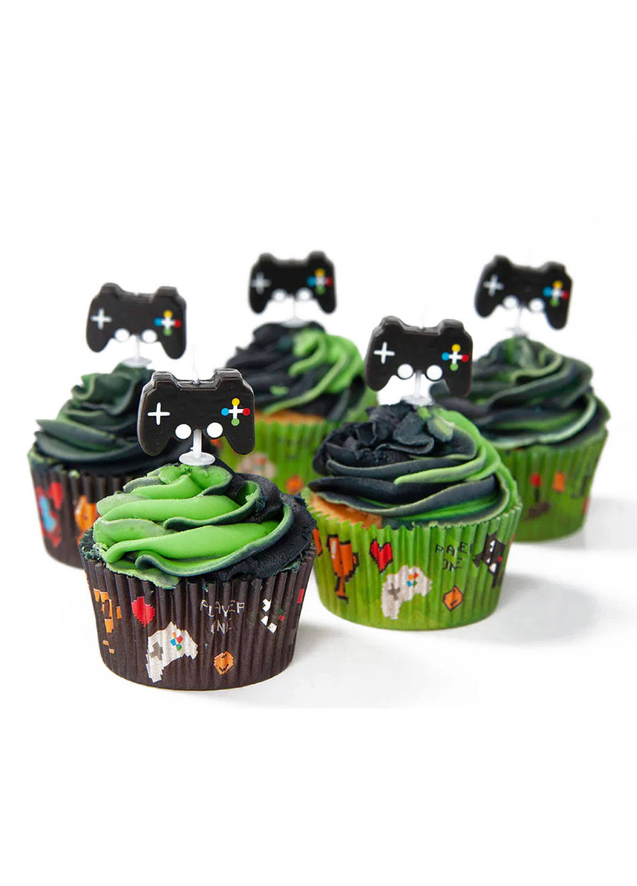 Świeczki z kolekcji Game On to świetny dodatek do dekoracji na TORT DLA GRACZA. W komplecie znajdziesz 5 świeczek w kształcie padów do gry, mocowanych na patyczkach. Te wyjątkowe świeczki sprawią wiele radości każdemu fanowi gier! Dzięki nim, nawet najprostszy tort dla gracza PS4 i nie tylko, nabierze wyjątkowego charakteru i nawiąże swoim wyglądem do hobby jubilata.