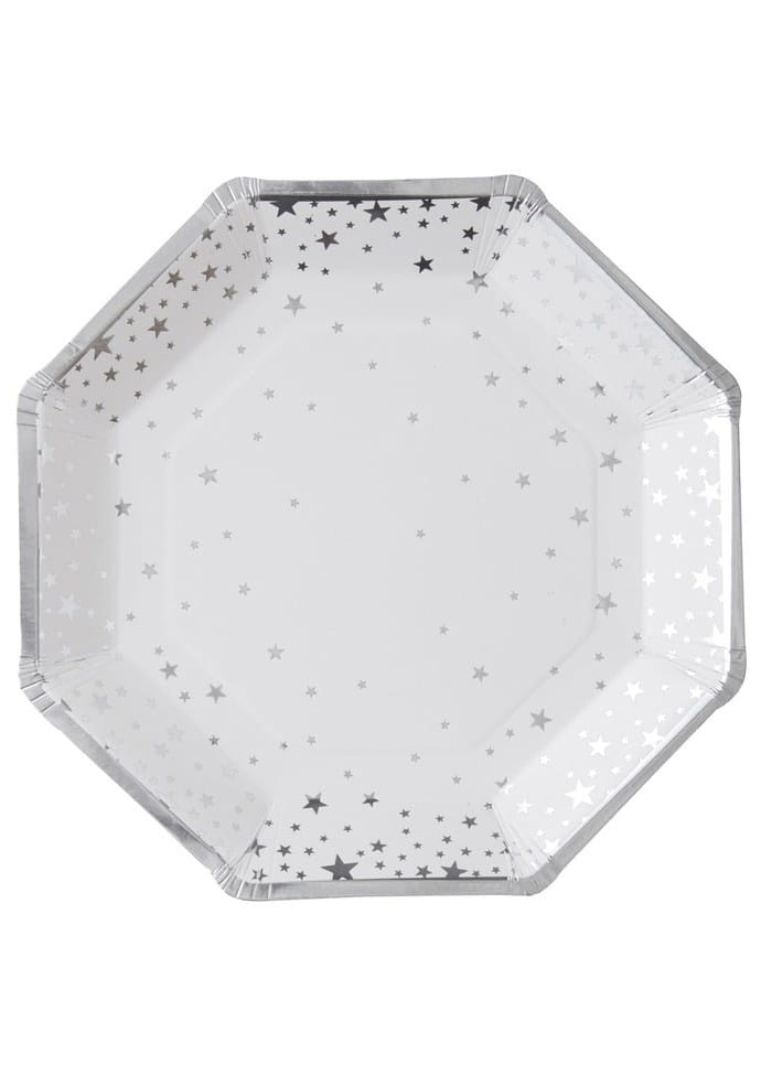 Talerzyki białe w srebrne gwiazdki GWIAZDA 23cm