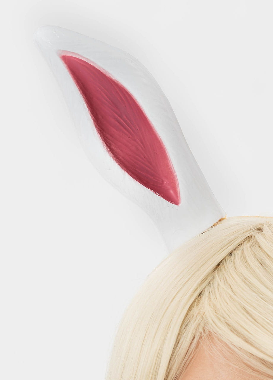 Plastikowe uszy królika, w białym kolorze i z różowym wnętrzem. Jeśli masz zamiar wskoczyć w strój królika lub planujesz trusie przebranie dla swojej pociechy, z pewnością potrzebujesz króliczych uszu. Ale dodatek świetnie sprawdzi się również jako niezależny element stylizacji. Załóż tę opaskę na głowę i zamień się w Białego Królika z "Alicji w Krainie Czarów", a na pewno podążą za Tobą wszystkie osoby ciekawe tej drugiej strony lustra!