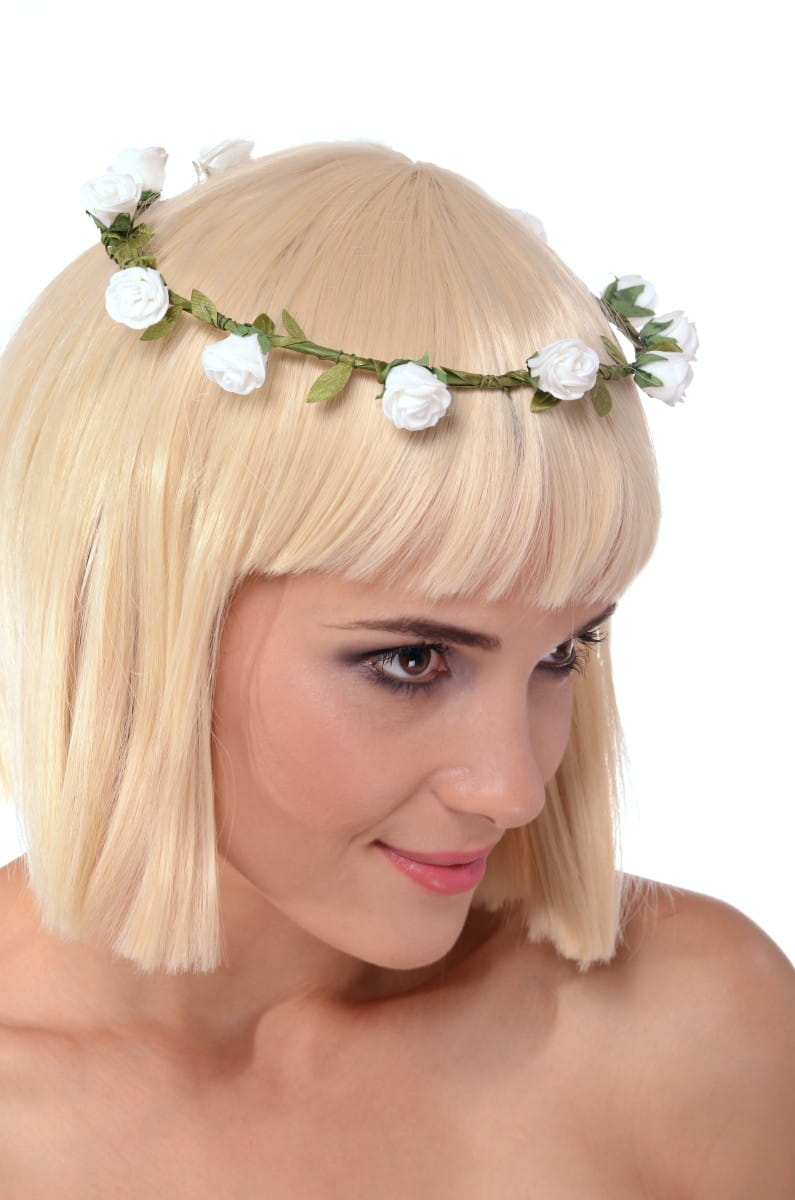 Wianek na głowę, wykonany ze sztucznych kwiatów. Delikatny i subtelny, idealny jako rekwizyt do sesji zdjęciowych oraz dodatek do stroju.