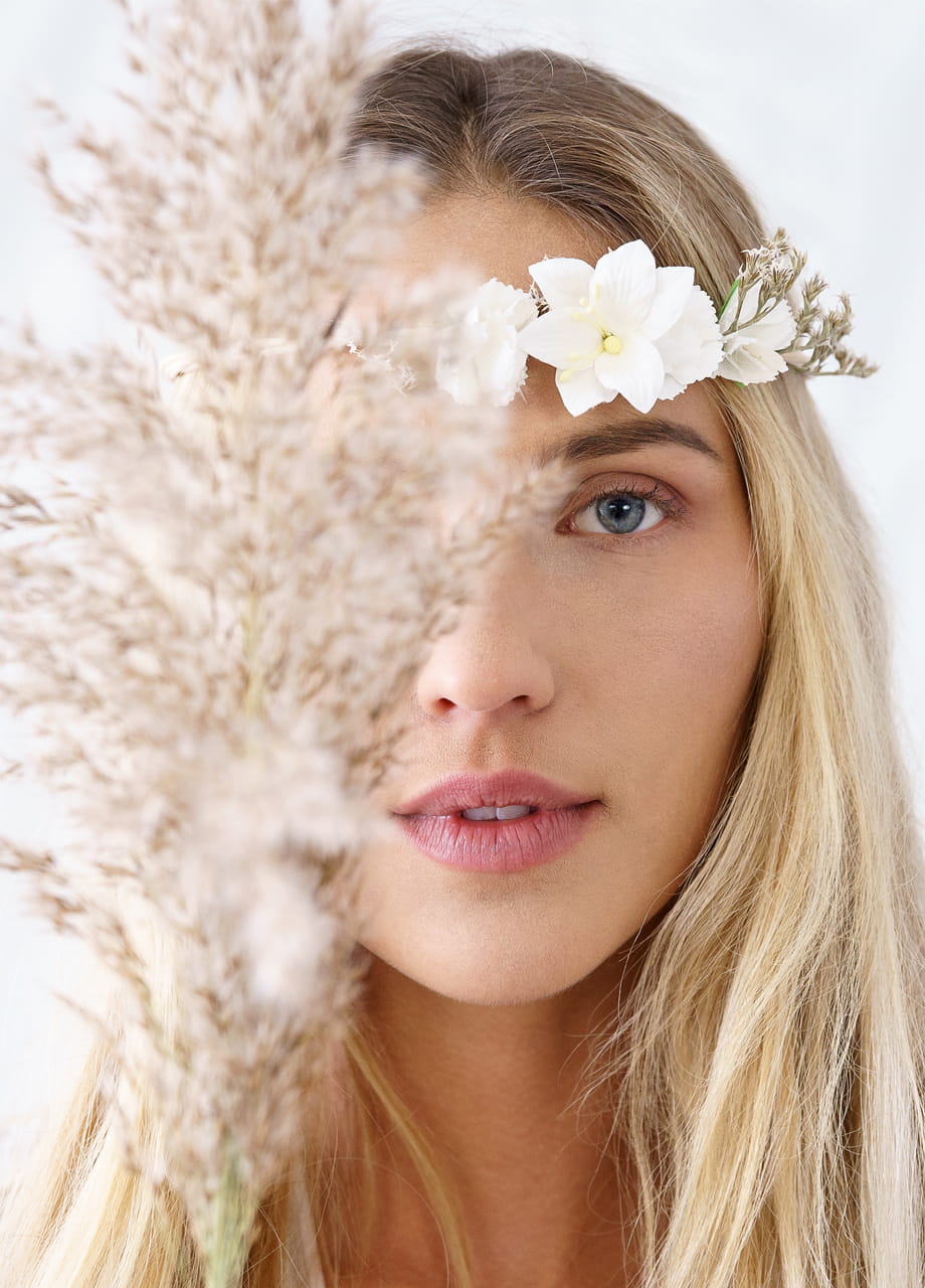 Wianek na głowę z kwiatami w kolorze białym. Delikatna ozdoba w romantycznym stylu, idealna na wieczór panieński i ślub w stylu boho.