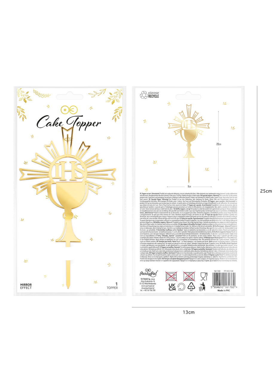 Szukasz eleganckiego dodatku, który podkreśli wyjątkowy charakter uroczystości komunijnej? Ten stylowy topper w złotym kolorze to doskonałe uzupełnienie dekoracji tortu lub stołu. Subtelny połysk i klasyczny symbol IHS nadają całości podniosłego i estetycznego wyglądu. Już na pierwszy rzut oka Złoty topper komunijny IHS idealnie wpisuje się w klimat uroczystości Pierwszej Komunii Świętej.
